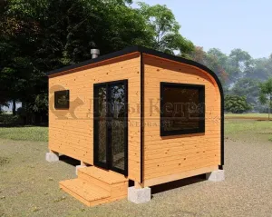 Баня «Парус» из кедра длиной 5 метров – это не просто место для парения, это стильный элемент ландшафтного дизайна. Ее элегантная форма и натуральное дерево гармонично впишутся в любой экстерьер. Эта модель сочетает в себе традиционную русскую баню с современными решениями, предлагая комфорт и эстетическое удовольствие. Баня имеет два просторных отделения, раздевалку и парилку, вместимостью до 4 человек.