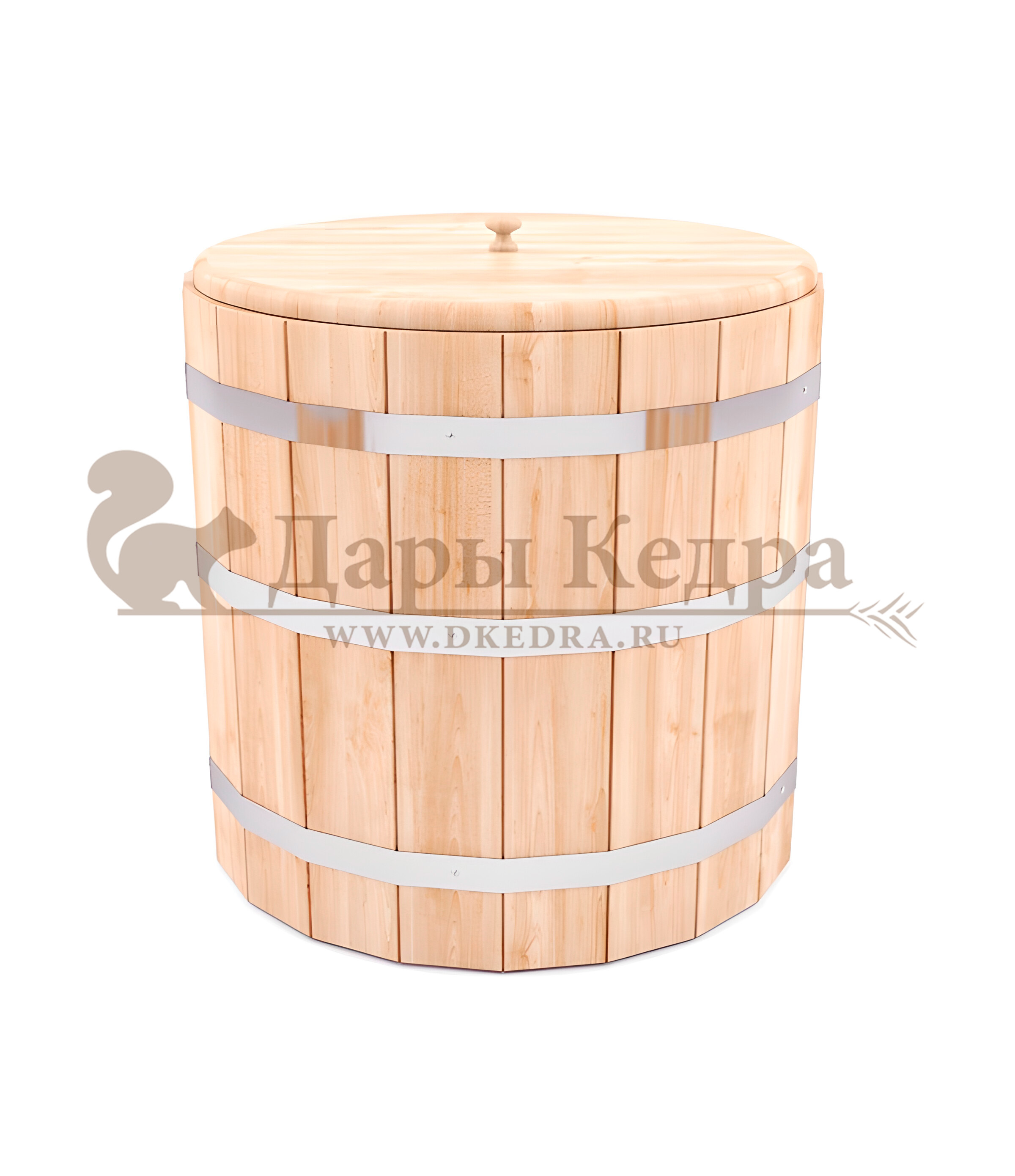 • Кадка для засолки из кедра Кадка кедровая для засолки и хранения продуктов является «стоячей тарой», в отличие от бочки ее нельзя герметично закрыть, положить на бок и покатить. По этой причине разнообразие объемов кадки остается в пределах 60 л. Покупают кадки для засолки исключительно для удобного хранения в подвале, на складе и других местах. Перед началом использования кадки необходимо залить её водой на сутки для насыщения древесины влагой.