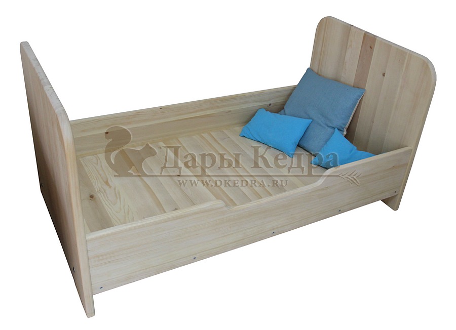 Детская кроватка Детская кровать оснащена прочными спинками и защитными бортами с выемкой для удобного подъёма и спуска. Целебная древесина кедра поможет укрепить иммунитет ребёнка, разгрузит нервную систему и подарит здоровый сон.