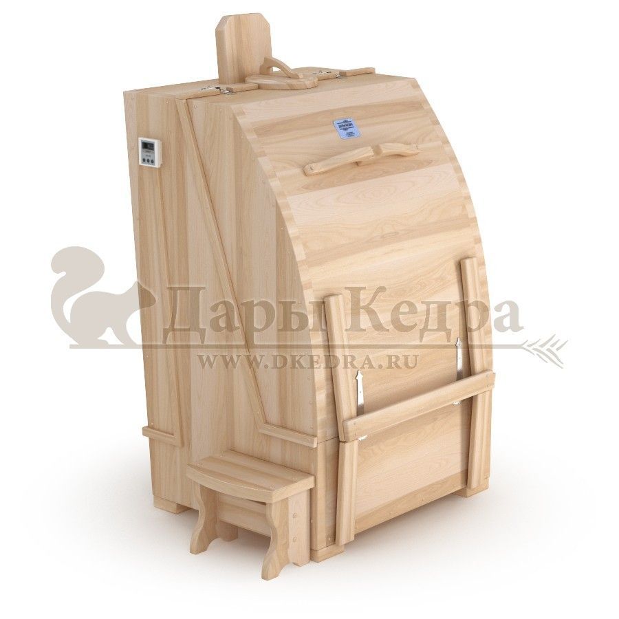 Кедровая бочка (фитобочка) квадратная «Двухрежимная Профессиональная» Квадратная двухрежимная фитобочка из кедра может быть использована как инфракрасная сауна и парная. Карбоновые излучатели отвечают за сухое парение, они находятся на внутренней стороне дверцы и задней стенке фитобочки. Влажное парение происходит за счет поступления горячего пара в фитобочку через паропровод. Толщина стенок составляет 40-45 мм, что позволяет увеличить срок службы изделия. Откидная дверь бочки во время открывания фиксируется внешней подставкой - опорой, которая в закрытом состоянии складывается и не занимает лишнее пространство. Во время парения человек сидит внутри кедровой бочки, а голова находится снаружи. Благодаря этому исключается возможность перегрева. Встроенная ручка на двери делают эксплуатацию фитобочки более удобной. Парение в фитобочке благотворно влияет на организм в целом: повышается иммунитет, выводятся шлаки и токсины, улучшается работа органов тела и состояние кожи.