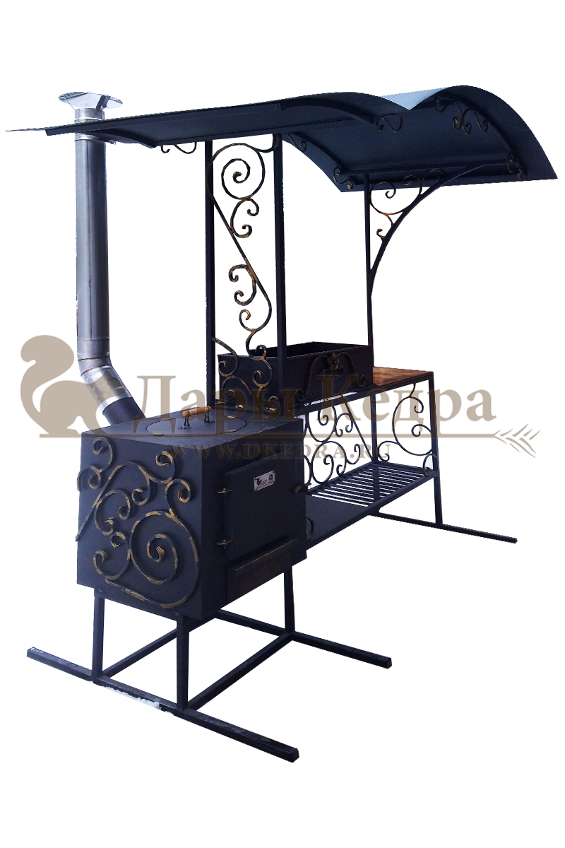 • Мангал кованый Уличные мангалы отличаются современным дизайном, функциональностью и комфортной эксплуатацией. Очень прочные, разборные, поэтому могут быть перевезены с одного места на другое без каких-либо сложностей. Наши дизайнеры и технологи предусмотрели всё, чтобы приготовление пищи на природе было безопасным и быстрым. Конструкция станет украшением любого участка. Кованые элементы расскажут об утонченном вкусе владельца. Мангал состоит из классической жаровни и печи под казан, поэтому разнообразие приготовленных блюд покорит любого. Все элементы изделия покрыты специальной жаропрочной краской, защищающей от коррозии и прогорания. Изделие также имеет столик, где можно разместить необходимые приборы для жарки, а под столиком находится полка для дров. Таким образом, мы предусмотрели всё, чтобы приготовление еды на природе было комфортным, безопасным, быстрым процессом, когда всё под рукой.