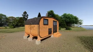Овальная-Окта баня-бочка из кедра просторная и вместительная. Имеет два отделения: раздевалку, которую можно использовать как комнату отдыха, и парилку. Для удобства пользования раздевалка оснащена лавочкой, полкой и вешалкой из кедра. В парильном отделении располагается печь и двухуровневый открытый полок. Для установки такой модели не требуется полноценный фундамент, поэтому при необходимости ее можно перенести на другое место. Так же баню-бочку можно укомплектовать верандой со скамейками, козырьком и печью с внешней загрузкой, благодаря которой весь мусор после топки останется на улице.