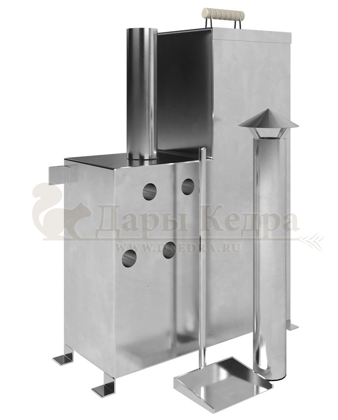 Печь погружная для купели фурако с дровяным отоплением (с циркуляционными отверстиями) Печь состоит из жаропрочной нержавейки. Толщина металла 2 мм. Внутри печи встроен колосник, который предотвращает дно от прожигания. В корпус печи встроены циркуляционные трубы, чтобы движение воды было максимально эффективным. Крышка печи оборудована таким образом, чтобы регулировать движение воздуха для поддува. Ножки оборудованы отверстиями для крепления печи в купели. В комплектацию печи входит савок с длинной ручкой, который позволяет извлекать угли после эксплуатации изделия.