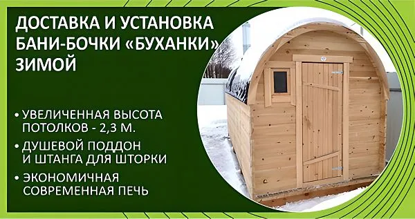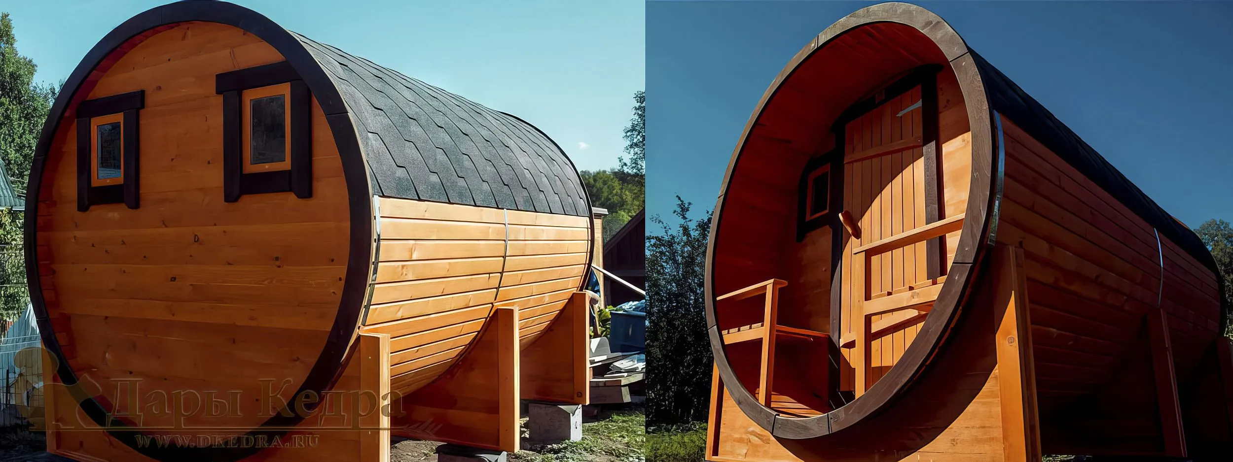 Важно помнить, что после установки первые несколько недель баня-бочка может подтекать по низу изделия, это связано с особенностями конструкции. Когда дерево наберет необходимую влагу с окружающей среды, все протечки закончатся.