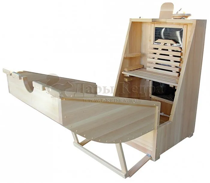 Пульт управления инфракрасной сауной и парогенератор премиум-класса для кедровой бочки (фитобочки) идёт в комплекте, ничего дополнительно приобретать не нужно. Ширина 78 см позволяет занести бочку в стандартный дверной проём. Купить кедровую бочку (фитобочку) квадратной формы, двухрежимную Вы можете у нас напрямую по цене производителя.