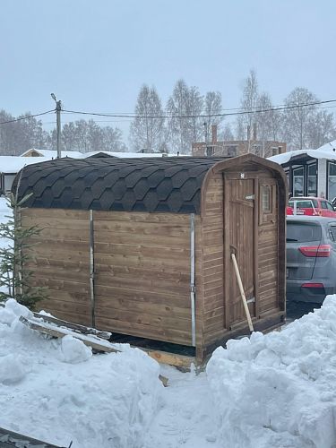 Заказали в Дарах Кедра баню-бочку, понравился дизайн. Очень оригинально смотрится и места хватает всем! В бане паримся все от мала до велика. Все довольны, счастливы и здоровы! Рекомендуем!